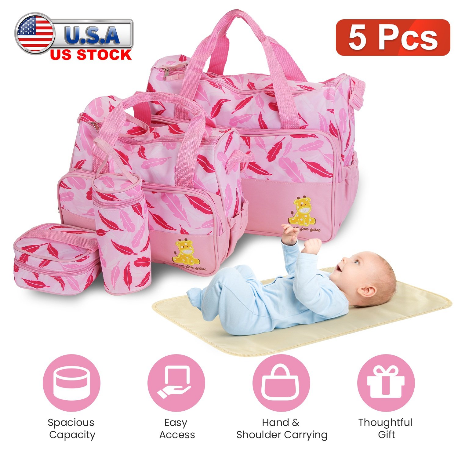 Home > 5Pcs Baby Nappy Diaper Bags Set Mummy Diaper Handbags with Diaper Pad Food Bag Bottle Bag Travel Tote Bags For Mom Dad